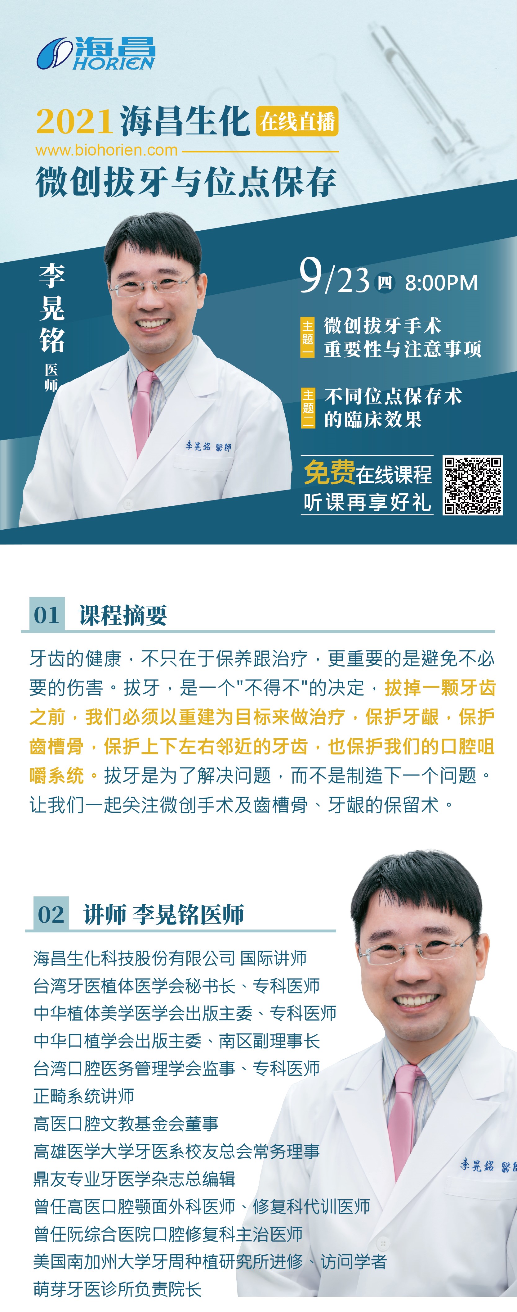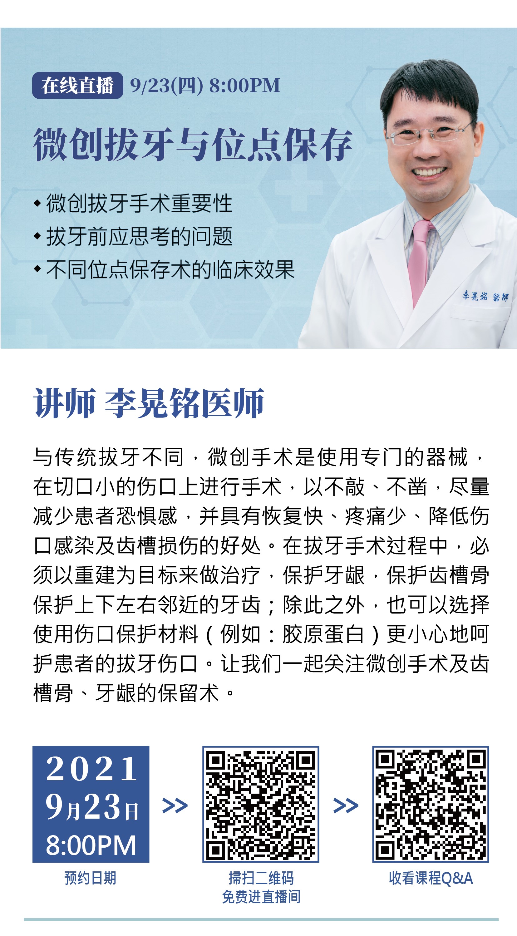 0923微创拔牙与齿槽骨保存术在线课程之获奖名单-李晃铭医师主讲
